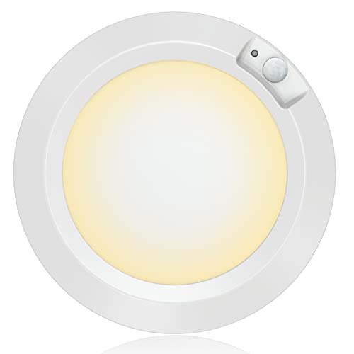 Rörelsesensor batteri kraft LED-ljus, Awanber rörelsedetektion garderob ljus batteridriven 2 arbetslägen trapphus taklampa 210 LM för hall skafferi tvättstuga källare – 3 000 K varmvit