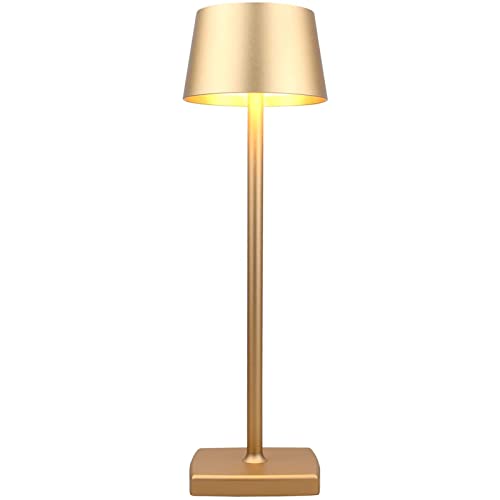 Sladdlös Bordslampa, 6000mAh Uppladdningsbart Batteri, IP54 Vattentät, Aluminiumlegering, Tryck på Dimning, 4W LED Varmt Ljus, för Inomhus och Utomhus Restaurang Buffé Bar Kafé, Guld