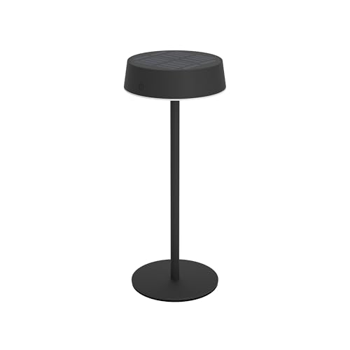 EGLO Roccanova Soldriven bordslampa, med batteri, för utomhus, touch-dimbar i 3 nivåer, solcellslampa för balkong och trädgård, svart stål, varmvitt ljus, IP44