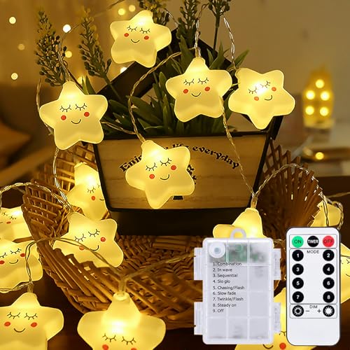 Meision Ljusslinga stjärna barnrum ljuskedja batteri inomhus med timer och fjärrkontroll, 3 meter, 8 lägen, 20 lysdioder, dekorativa lampor för sovrum, bröllop, jul