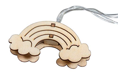 Rayher 69235159 LED-ljusslinga med träregnbågar, ljusgul, 175 cm, 10 lysdioder, batteri med timerfunktion, natur, normal