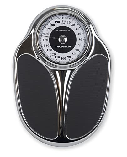 THOMSON Trad Mass - mekanisk personvåg - upp till 200 kg - bred halkfri platta - optimal läsbarhet - vintagestil, kromfinish - utan batteri