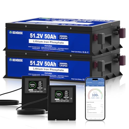 DCHOUSE 48 V 100 Ah (2-pack 50 AH) LiFePO4-batteri, uppladdningsbart batteri med mer än 4 000 cykler, integrerad BMS, perfekt för golfbilar, gräsklippare, husbilar, solanläggning, e-skoter, camping