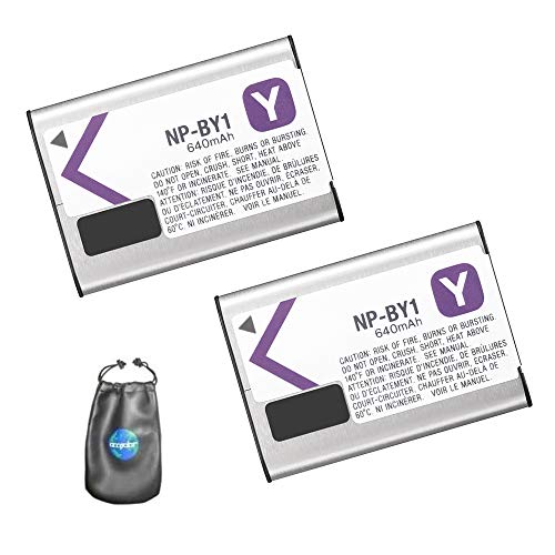 amsahr® ValuePack (2 räknare): Digital ersättning kamera och videokamera batteri för Sony NPBY1, Action Cam Mini HDR-AZ1, HDR-AZ1VB, HDR-AZ1VR. - Inkluderar linstillbehörsficka