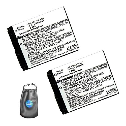 Amsahr digital ersättning kamera och videokamera batteri för Sony NPFD1, NP FD1, ?70 pack med 2 - Inkluderar linstillbehörspåse