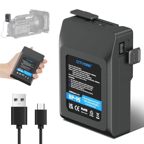 CITYORK 95Wh V-Mount/V-lås batteri för Sony BP-95W med USB-C-ingångsladdare och USB-C-kabel, kompatibel med Sony-videokamera, videosändning, LED-ljus BP-95W