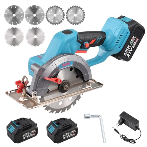 Borstlös cirkelsåg batteridriven cirkelsåg 20 V 1 080 varv/min, maximalt skärdjup 40 mm, handsåg med batteri och skärladdare