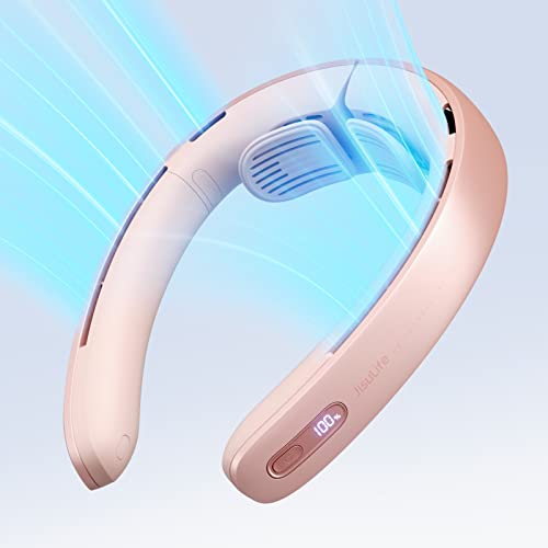 JISULIFE halsfläkt Pro, 100 hastigheter bladlös fläkt, bärbar fläkt steglös vred, LED-skärm, 5 000 mAh uppladdningsbar personlig fläkt, mini handsfree, USB-batteridriven bärbar fläkt – rosa