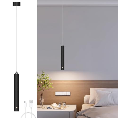 ACMHNC LED-pendellampa, svart, hängande lampa med batteri, 4 500 mAh batteri, cylinderpendellampa, batteridriven för nattduksbord, sovrum, 4 x 30 cm
