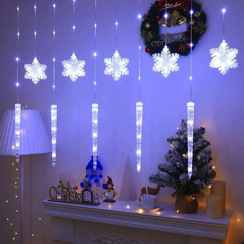 OBOSOE Julbelysning 3M Snöflinga Ljusslinga Gardinljus med Fjärrkontroll Batteridriven Inne Ute Dekor