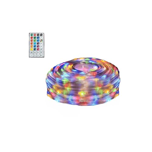 Joycome Led Lichtschweif 1 m 100 LED-ljusslinga, 8 ljuslägen, vattentät, ljusslinga, batteridriven med fjärrkontroll för julgran, inomhus, utomhus, fest, bröllop, dekoration (varmvit)