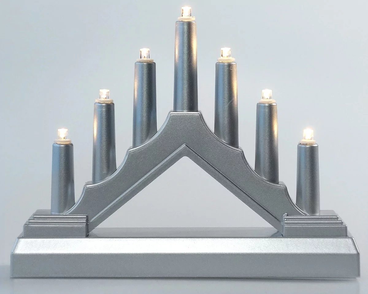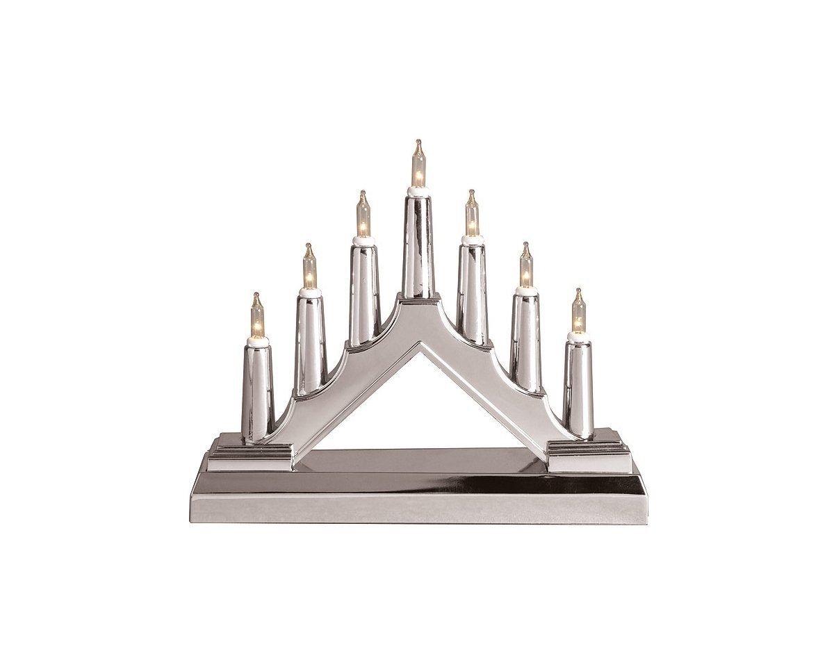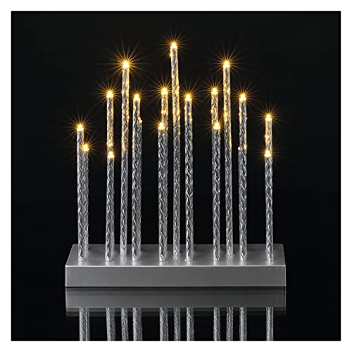 EMOS LED-ljusstake med 19 ljus, silverglänsande effekt, batteridriven 3 x AA, inomhus IP20, 6/18 h timerfunktion, 28, 5 x 25 cm, DCAW02, silver
