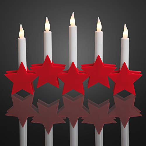Hellum LED-ljusstake, ljusbåge, plast, röda stjärnor, 5 varmvita lysdioder, 27 x 17 cm, kabel transparent, inomhus, batteridriven (3AA), juldekoration, 520309