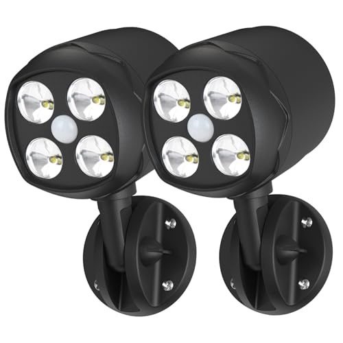Festliga lampor – 20 cm batteridriven spotlight för utomhusbruk – PIR-rörelsesensor, 350 lumen, IP44 väderbeständig med justerbar stråle och timer – vit LED-säkerhet för trädgård, dörröppningar och