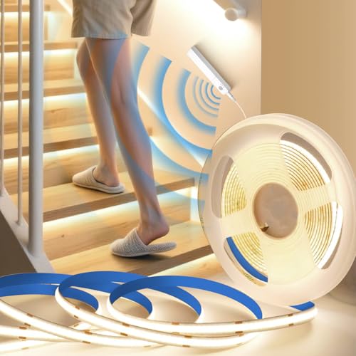 BRIMETI COB LED Strip Med Rörelsesensor Batteridriven Neutral Vit 4000K LED Remsa 5M 5V Strip Flexibel Självhäftande 320LED/m Ljusremsa Inomhus Belysning Remsa Band för Dekoration DIY Kök