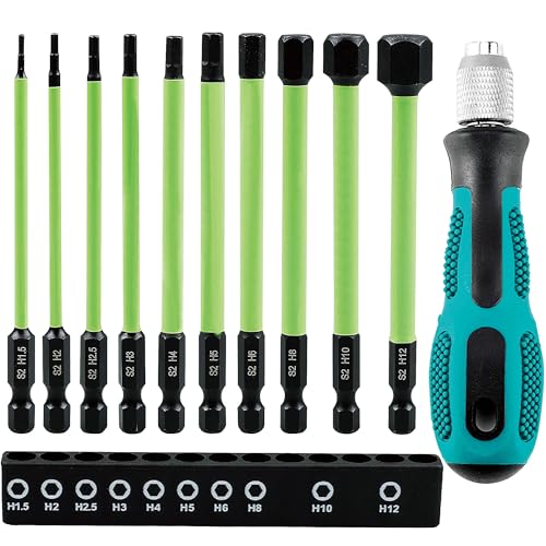 Hex insexnyckel skruvmejsel bit set lång 100 mm 1/4 tum S2 Impaktorbitsats för batteridriven skruvmejsel 1,5/2/2,5/3/4/5/6/8/10/12 magnetisk hexagon insexnyckel (10 skruvmejselhandtag)