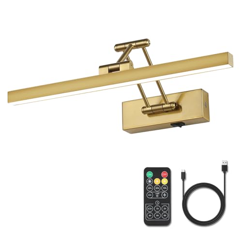 Pasoar Bildljus batteridriven mässing 40 cm långa uppladdningsbara vägglampor dimbara LED-biblioteksljus med svängarm och timerfunktion batteri vägglampa inomhus guldfärg