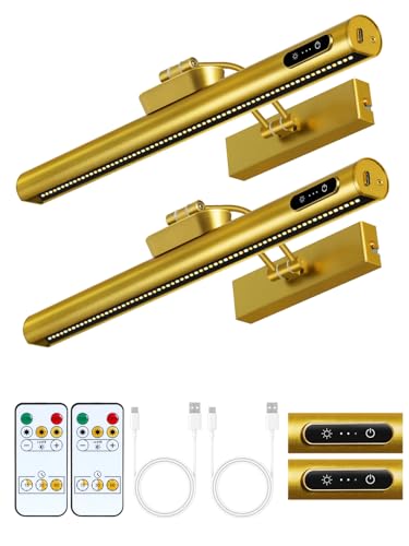 OUTON Bildbelysning 40cm Trådlös Uppladdningsbar med Fjärrkontroll+Touch, LED-Batteridriven Vägglampa för Konstbelysning, Dimbar 3-Färger, 4000mAh USB-C, Vägglampa för Målningar Speglar – Guld