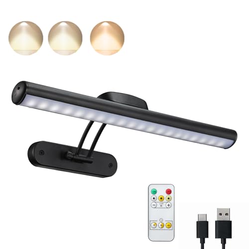 HARPER LIVING uppladdningsbar bildlampa med fjärrkontroll, dimbar och 3 färgtemperaturer, batteridriven vägglampa med timer och minne, LED-display lampa för darttavla, bilder, ram, galleri-svart