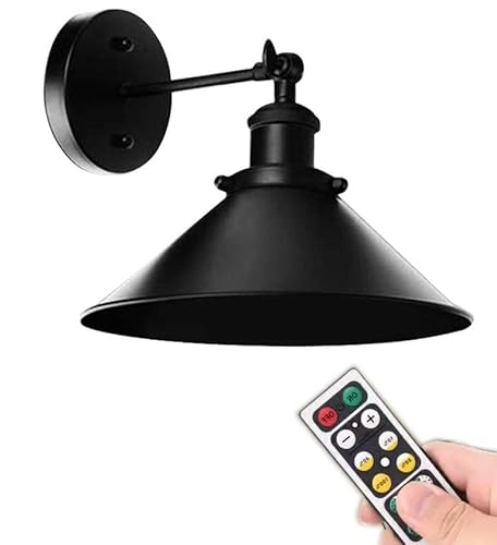 lampa svart industriell led vägglampa Batteridriven trådlös vägglampa med fjärrkontroll, sladdlös vägglampa Retro väggdekor Konst Bildbelysning för sovrum Dresser Badrum Loft Vardagsrum