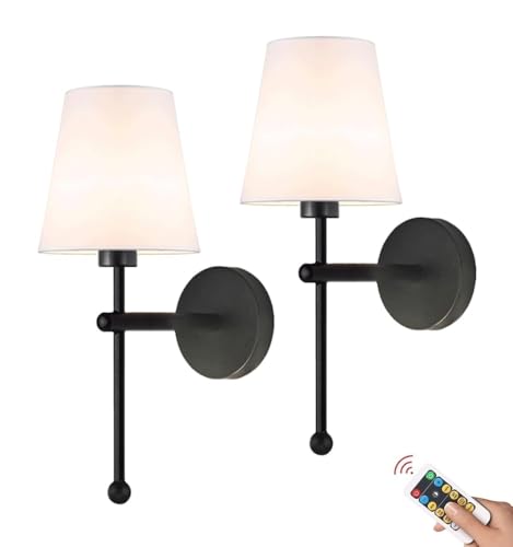 DCOC Vägglampetter batteridriven vägglampa set med 2 dimbara, batteridrivna väggljusarmaturer med fjärrkontroll – inte ansluten lampett – lätt att installera – för sovrum bondgård sängbord läslampa