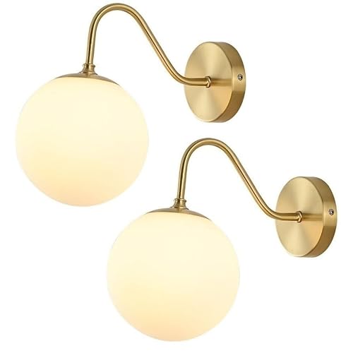 KEFA Mid Century Modern trådlös batteridriven vägglampa - gyllene och vit jordglob för sovrum, badrum, vardagsrum, hall, trappa