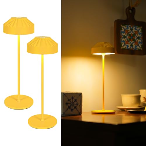 LuminexDesigns Set med 2 gula batteridrivna bordslampor, dimbara, dekorativa och funktionella lampor för läshörna eller matsal