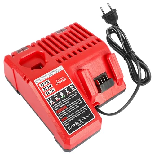 QUPERR 3A Snabbladdare för M12 & M18, Kompatibel med Milwaukee 12V–18V Li-ion Batterier 3Ah 4Ah 5Ah 6Ah, med LED-indikator och Flerskydd
