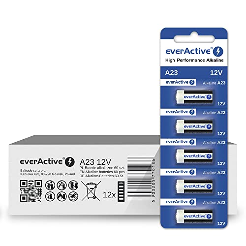 everActive A23,12 V, 55 mAh, batterier, alkalisk, MN21, V23GA, LR23A, MS21, 60 stycken – 12 blisterkort