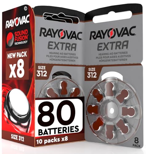80 Hörapparat Batteri Rayovac Extra Storlek 312. 10x8 Batterier för Hörapparater