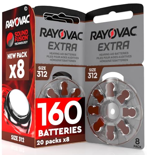 160 Hörapparat Batteri Rayovac Extra Storlek 312. 20x8 Batterier för Hörapparater