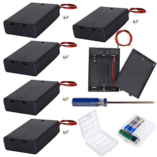 HALJIA 5 st 3 V AAA 2 x 1,5 V batterihållare fodral förvaringsbox batteriorganiserare batteribehållare med trådledningar svart