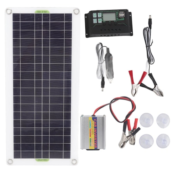 12V till 220V 30W Solar Laddningspanel 220W Solar Inverter Batteriladdare Kit för Camping Vandring 10A