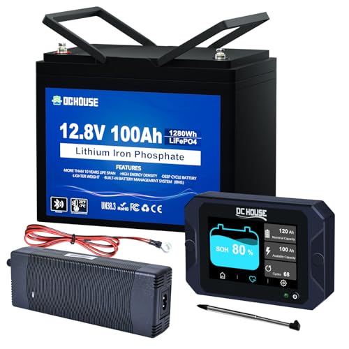 DCHOUSE 12V 100Ah LiFePO4 Bluetooth litiumbatteri med 10A batteriladdare, upp till 15000 cykler, 1280Wh litiumbatteri, för trollingmotorer, husbilar, solsystem, camping, off-grid