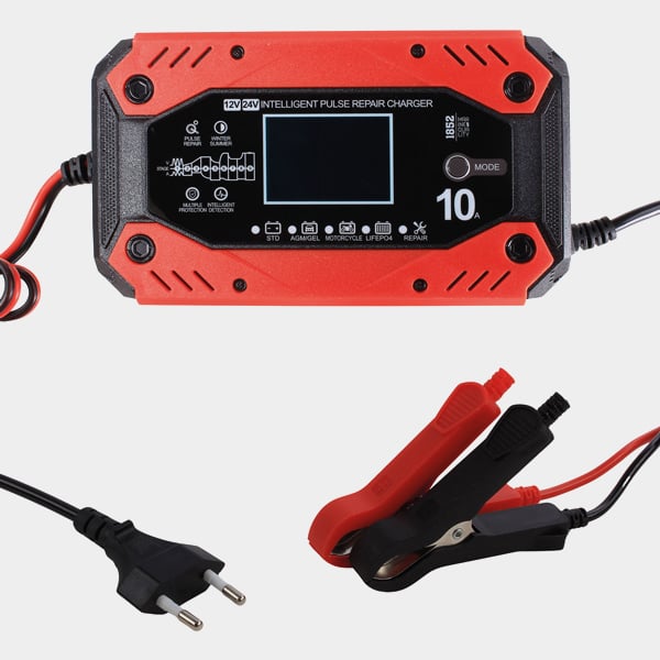 Husgw 12V/24V 10A intelligent batteriladdare, batteriladdarehållare och bilreparationsfunktion Bärbar med LCD-skärm, för bilmotorcykellastbil, AGM, Gel, Wet, SLA(8-100AH)