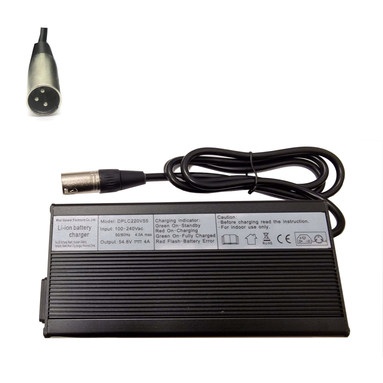 airwak 48V batteriladdare för elektrisk cykel, 54,6V 2A 3Prong GX16 DC 5,5 mm XLR IEC RCA Strömkontakt Kompatibel med Ecotric Bike/Lectric XP/Evercross H5 48V Litiumbatteri Adapter