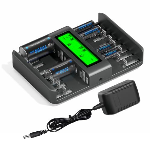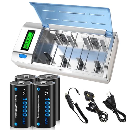 CITYORK universal LCD-display batteriladdare med urladdningsfunktion för AA, AAA, C, D, 9V NI-MH NI-CD batterier med 4 x NI-MH D storlek 10000mAh batteri