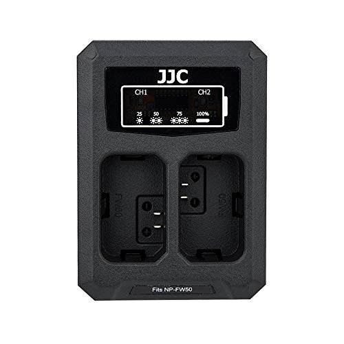 JJC USB dubbel batteriladdare för Sony NEX, Alpha A6500 A6400 A6300 A6000 ZV-E10 etc. Kameror ersätter Sony NP-FW50 [Se beskrivning för fler kompatibilitetskameror]