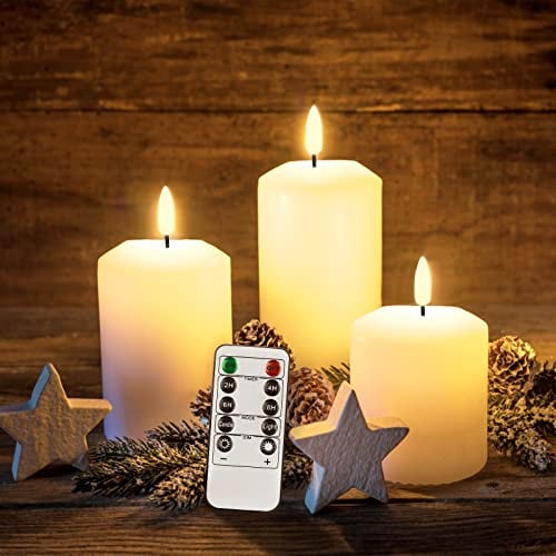 Encham LED-ljus, 3 stycken, flamlösa stearinljus, varmt vitt ljus, batteriljus med timerfunktion, fjärrkontroll för fest, juldekoration