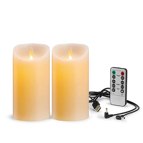 LED-ljus, [2-pack] Uppladdningsbara ljus, flamlösa ljus med fjärrkontroll, laddande ljus med USB-kabel, batteriljus med timer för jul, halloween, festivaler dekoration – 7,5 x 10 cm