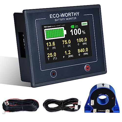 ECO-WORTHY batteriskärm 200 A 12 V/24 V/36 V/48 V, 3,5 tums pekskärm batteriskärm med larm, 10–100 V Li-Ion/LiFePO4/gelbatterier batteritestare för husbilar, solanläggningar