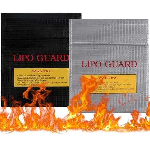ImnBest 2 stycken Lipo Safe Bag, brandsäker Lipo batteriväska, Lipo batteriväska, brandsäker explosionssäker Lipo Safe Bag för laddning och transport, batteri säkerhetslåda, svart, modern