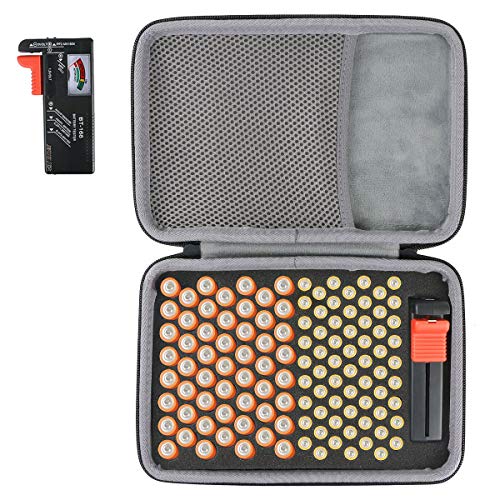 Linkidea förvaringsbehållare för hård batteri, organiseringslåda med testare BT-168, batterihållare för säker bärbar batteriväska - rymmer 76 olika storlekar AA AAA 9V C D-batterier med batteritestare
