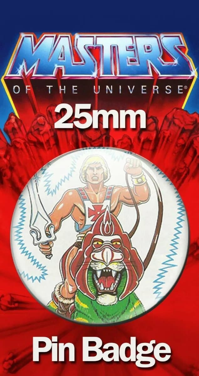 HE-MAN & BATTLE CAT BOX ART 25mm BADGE He-Man Masters of the Universe MOTU Image