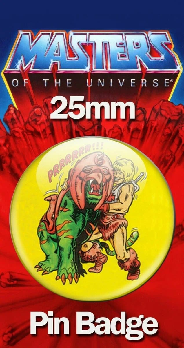 HE-MAN & BATTLE CAT COMIC ART 25mm BADGE He-Man Masters of the Universe MOTU