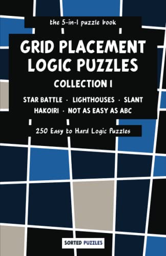 the 5-in-1 puzzle book - Star Battle, Lighthouses, Slant, Hakoiri, Not as Easy as ABC: Grid Placement Logic Puzzles - Collection 1 - 250 Easy to Hard Puzzles with Solutions