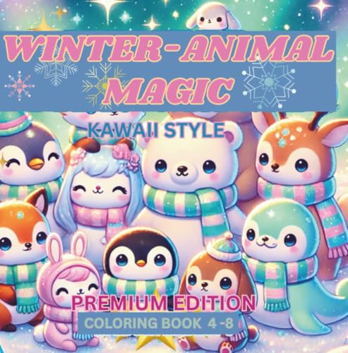 WINTER-ANIMAL-MAGIC / PREMIUM EDITION - KAWAII STYLE - COLORING BOOK (AGES 4-8): CUTE KAWAII WINTER ANIMALS TO COLOR - full of Love, Magic and Winter Sparkle