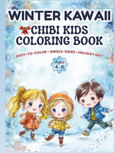 Winter Kawaii Chibi Kids Coloring Book: Bold & Easy Large Print Pages for Ages 4-8: Premium Hardcover Edition - 0 Cute Winter Anime Girls, Single-Sided, Holiday Gift