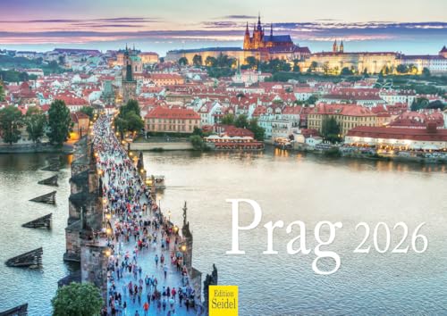 Edition Seidel Premium kalender Prag 2026 format DIN A4 väggkalender Europa Tjeckien Tjeckien Karlsbro vattentornet Donau metropol