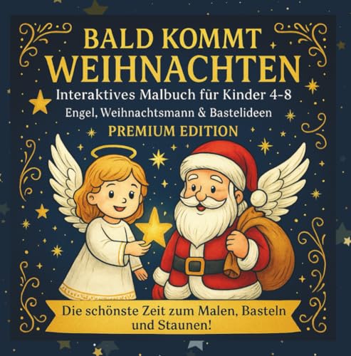 BALD KOMMT WEIHNACHTEN-INTERAKTIVES MALBUCH für Kinder 4-8-Engel, Weihnachtsmann & Bastelideen/PREMIUM EDITION: Die schönste Zeit zum Malen, Basteln und Staunen!